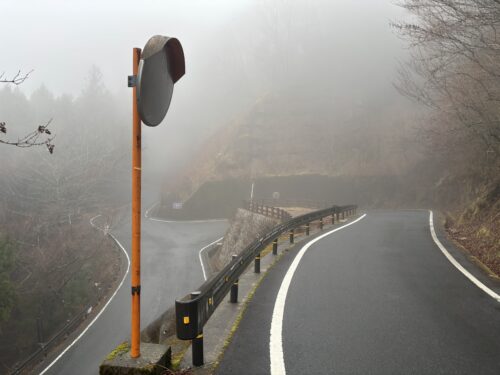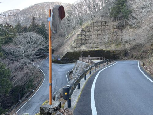 玉置山駐車場から最寄りの三叉路、425号線への分岐点の画像です。
